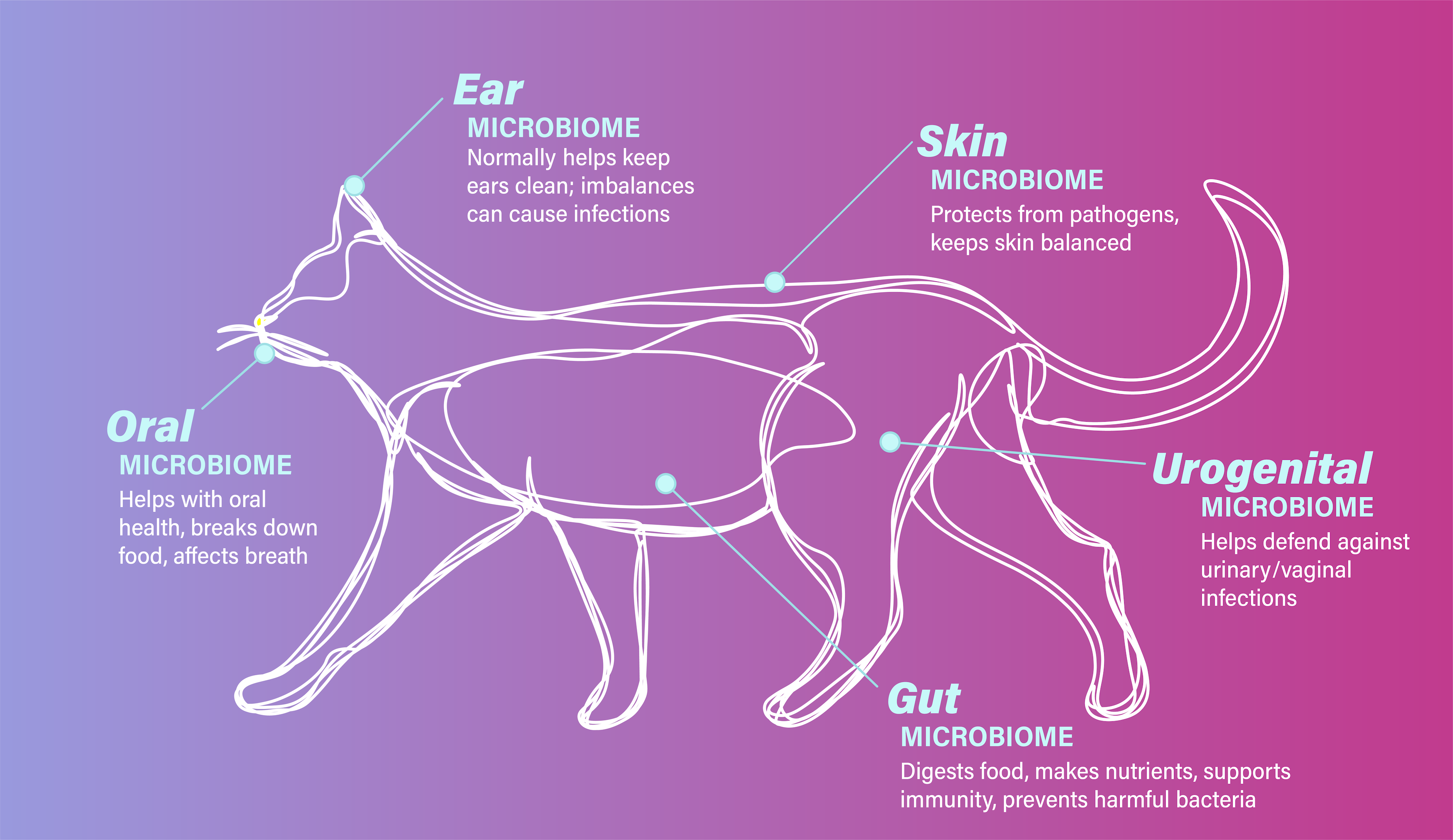 Like humans, your pet’s microbiome is the community of microorganisms living in and on its body. Each area has its own microbial population, and a balanced microbiome is crucial for your pet’s health, digestion, and immune system.