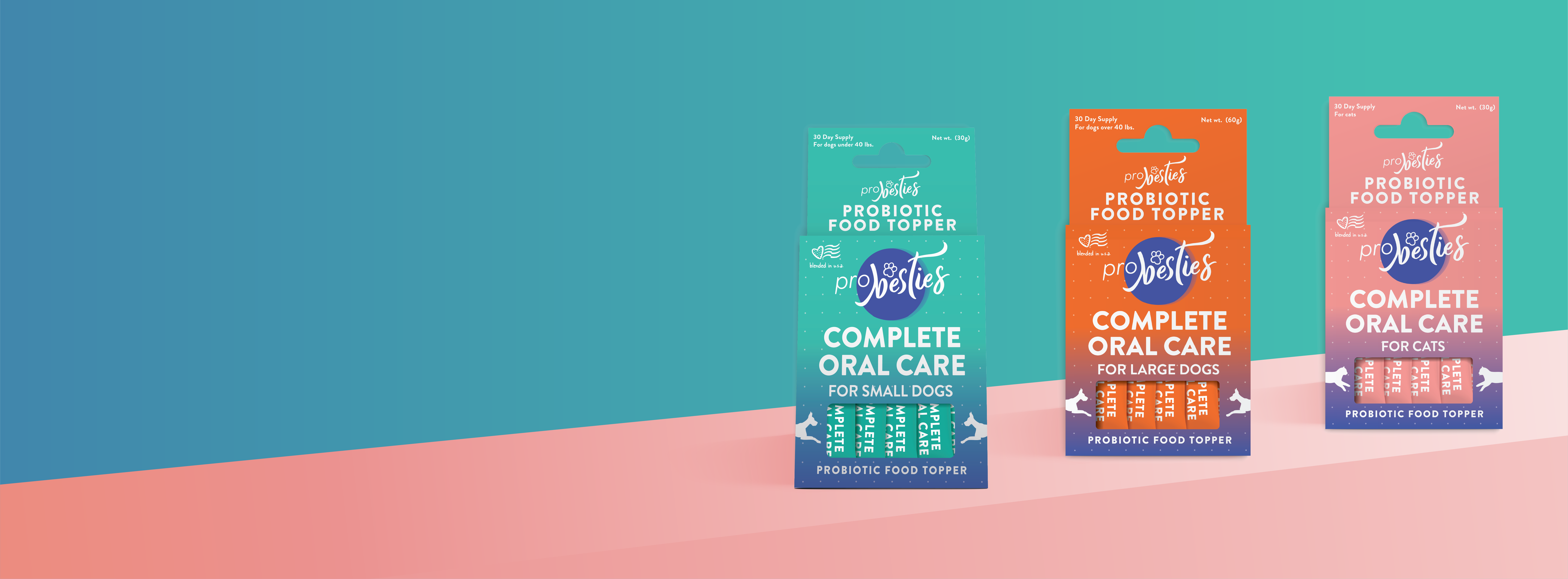 Developed by Dr. Casey Haught, DMD, ProBesties Complete Oral Care attacks the root cause of oral health issues. A proprietary blend of probiotics, enzymes, and inflammation fighting ingredients promotes a healthy oral microbiome. Replacing bad bacteria with beneficial strains restores the natural microbial balance of your pet’s mouth. The result is cleaner teeth, fresher breath, healthier gums, and increased tooth stability.